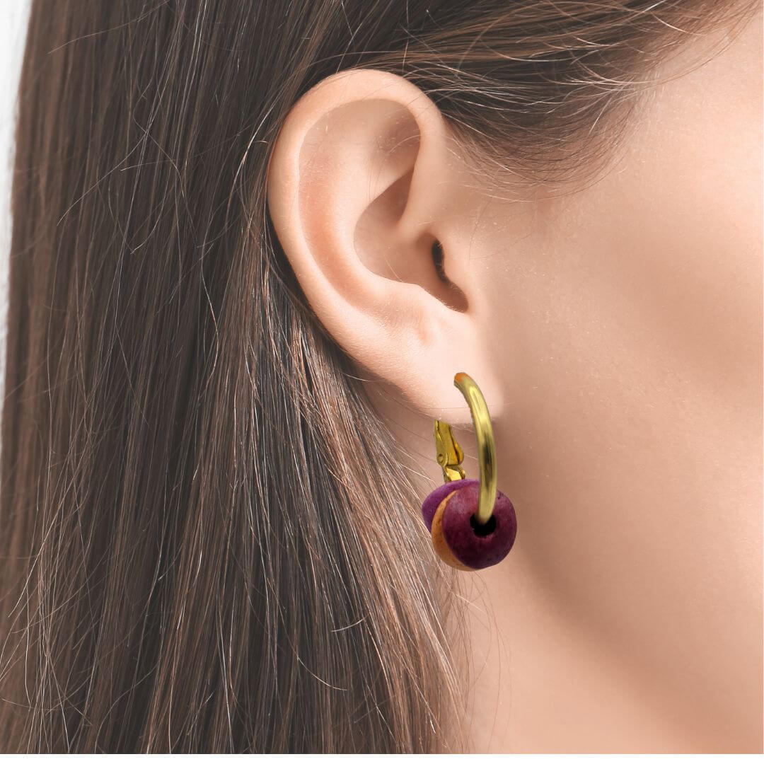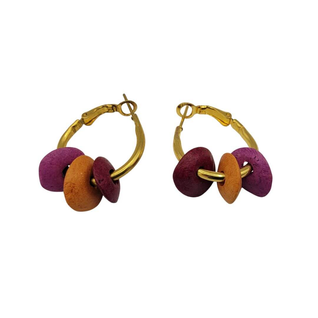 Vergoldete Ohrring-Kreole bestückt mit jeweils 3 handgemachten Keramik-Scheiben